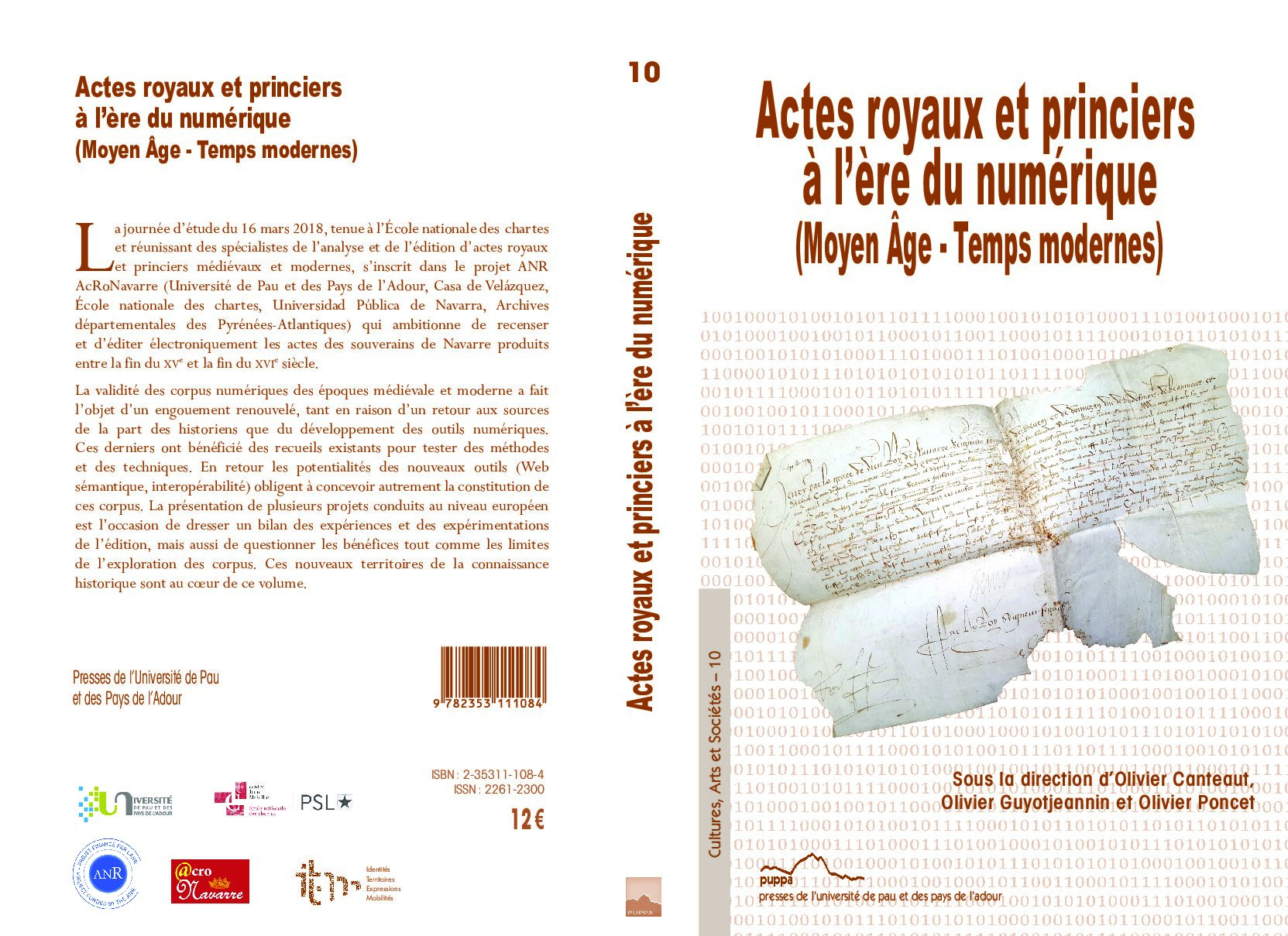 La journée d’étude du 16 mars 2018, tenue à l’École nationale des chartes et réunissant des spécialistes de l’analyse et de l’édition d’actes royaux et princiers médiévaux et modernes, s’inscrit dans le projet ANR AcRoNavarre (Université de Pau et des Pays de l’Adour, Casa de Velázquez, École nationale des chartes, Universidad Pública de Navarra, Archives départementales des Pyrénées-Atlantiques) qui ambitionne de recenser et d’éditer électroniquement les actes des souverains de Navarre produits entre la fin du xve et la fin du xvie siècle.