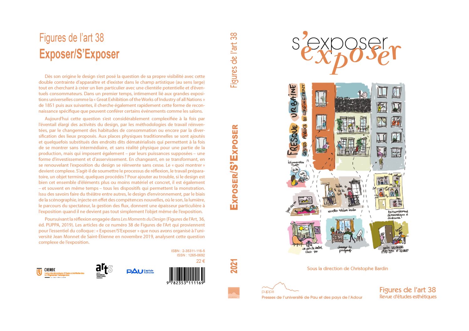 Poursuivant la réflexion engagée dans Les Moments du Design (Figures de l’Art, 36, éd. PUPPA, 2019). Les articles de ce numéro 38 de Figures de l’Art qui proviennent pour l’essentiel du colloque : « Exposer/S’Exposer » que nous avons organisé à l’université Jean Monnet de Saint-Étienne en novembre 2019, analysent cette question complexe de l’exposition.