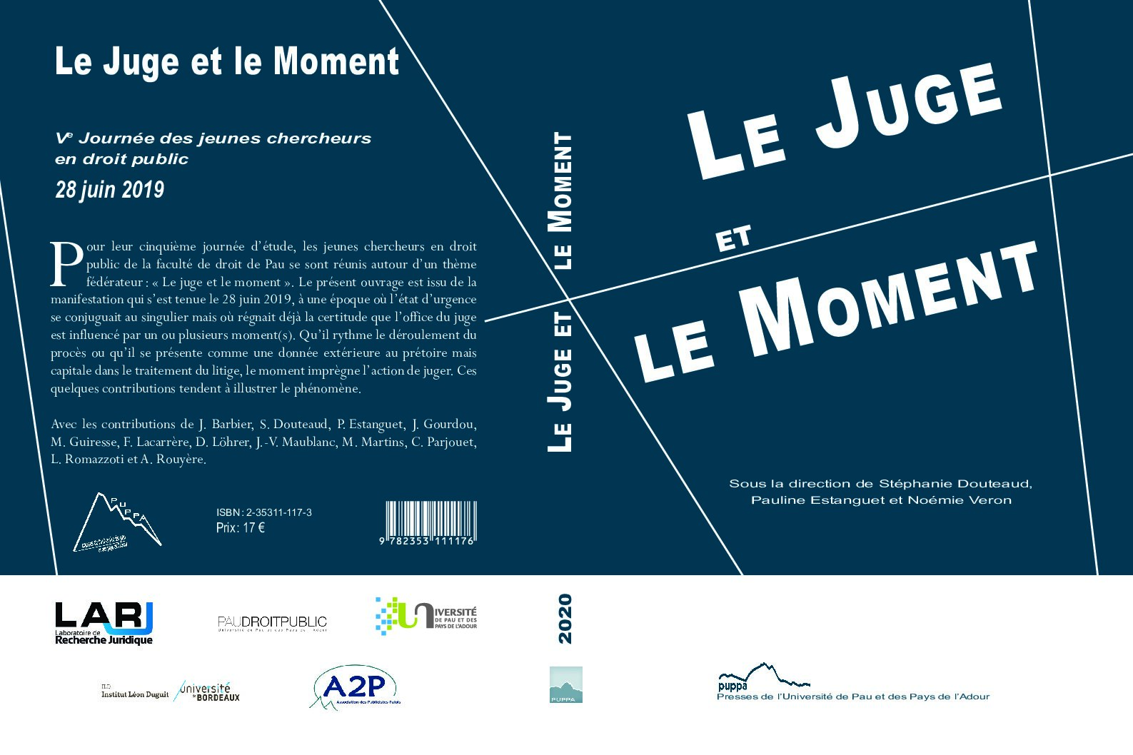 Pour leur cinquième journée d’étude, les jeunes chercheurs en droit public de la faculté de droit de Pau se sont réunis autour d’un thème fédérateur : « Le juge et le moment ». Le présent ouvrage est issu de la manifestation qui s’est tenue le 28 juin 2019, à une époque où l’état d’urgence se conjuguait au singulier mais où régnait déjà la certitude que l’office du juge est influencé par un ou plusieurs moment(s). Qu’il rythme le déroulement du
