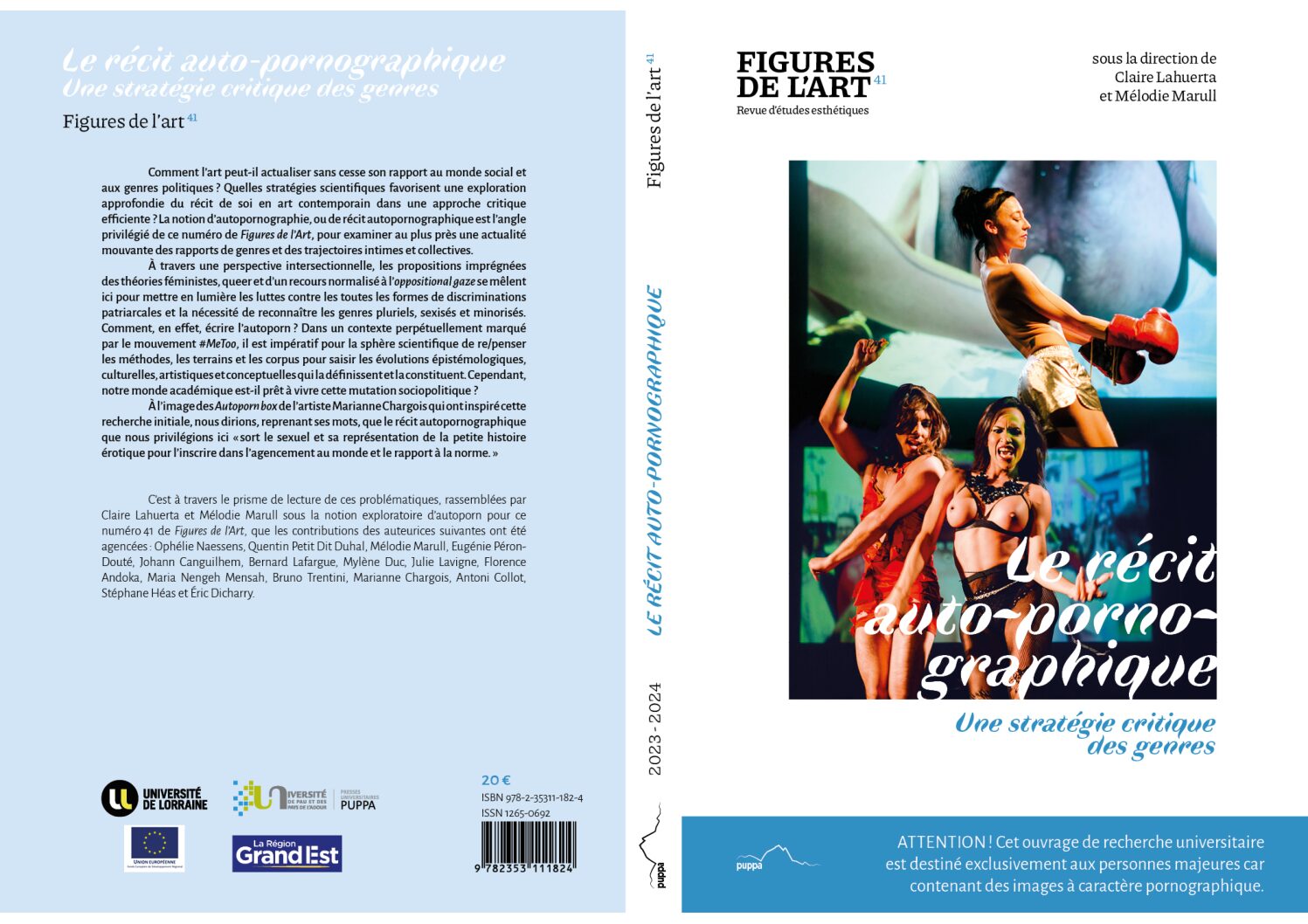 Comment l’art peut-il actualiser sans cesse son rapport au monde social et aux genres politiques ? Quelles stratégies scientifiques favorisent une exploration approfondie du récit de soi en art contemporain dans une approche critique efficiente ? La notion d’autopornographie, oude récit autopornographique est l’angle privilégié de ce numéro de Figures de /’Art, pour examiner au plus près une actualité mouvante des rapports de genres et des trajectoires intimes et collectives.