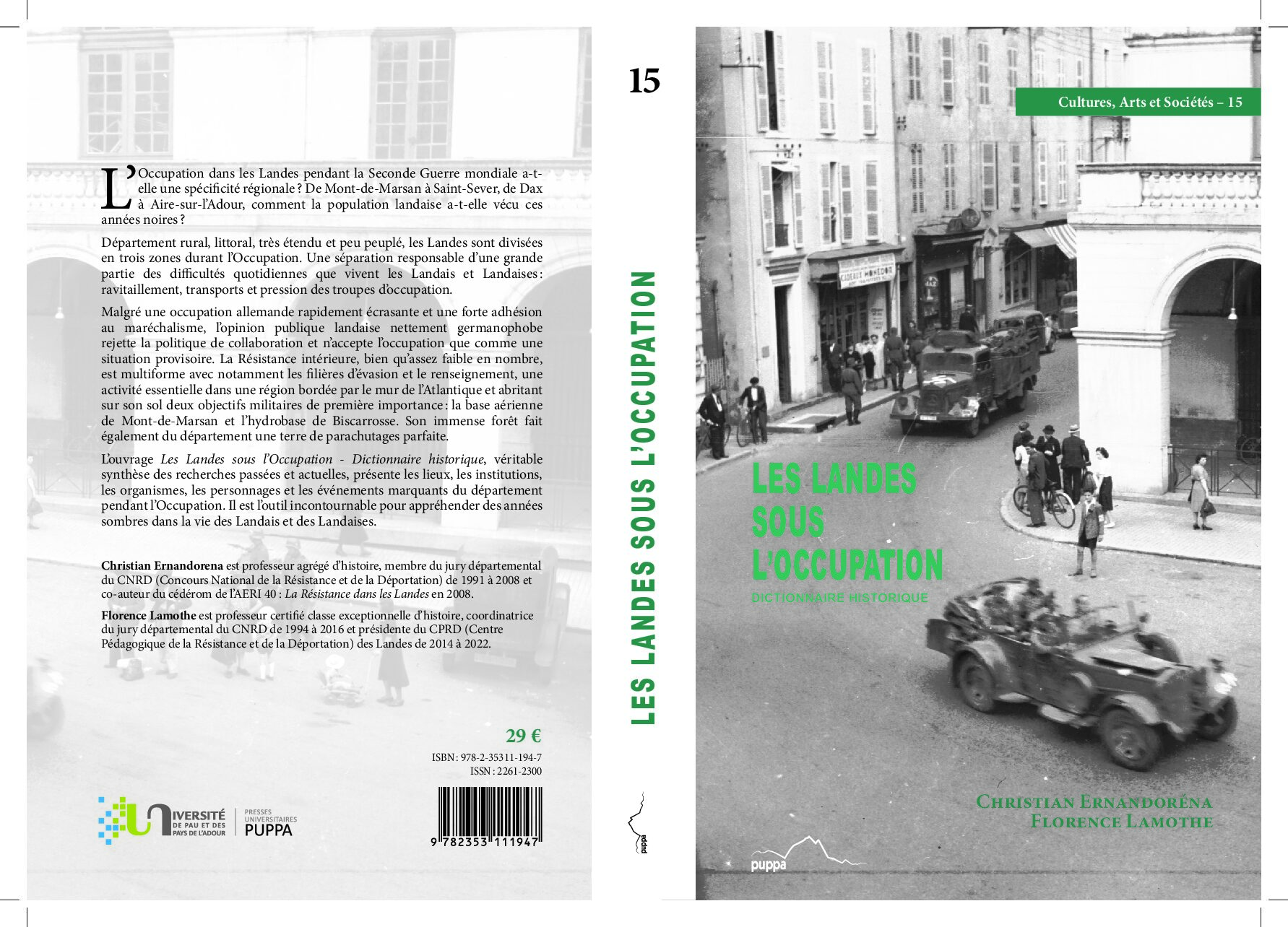L’ouvrage Les Landes sous l’Occupation Dictionnaire historique, véritable synthèse des recherches passées et actuelles, présente les lieux, les institutions, les organismes, les personnages et les événements marquants du département pendant l’Occupation. Il est l’outil incontournable pour appréhender des années sombres dans la vie des Landais et des Landaises.